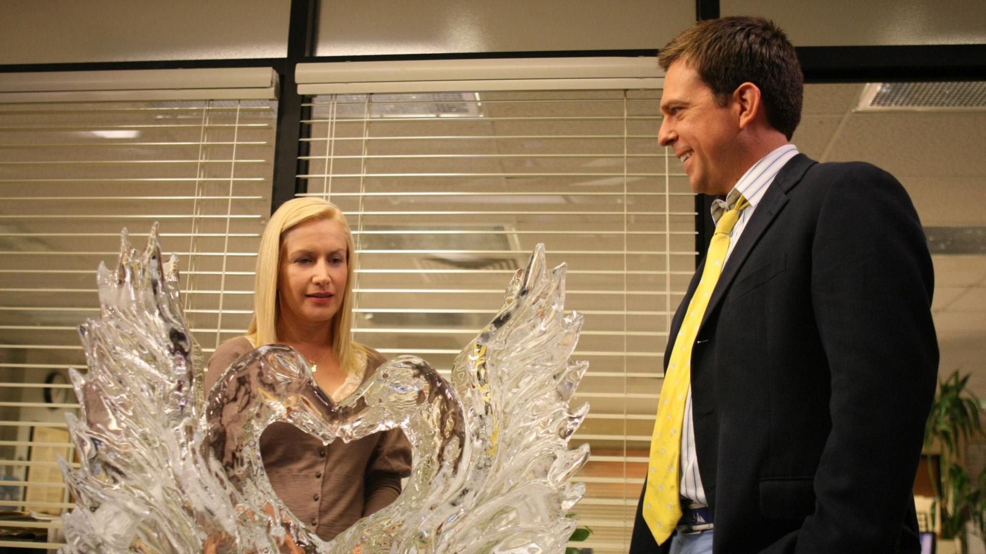 המשרד 4 - פרק 5 חלק ראשון מתוך שניים. הגיע הזמן להשיק את אתר אינפיניטי של דאנדר מיפלין ומייקל (סטיב קארל, זוכה בפרס גלובוס הזהב) מתרגש ממסיבת ההשקה הגדולה בניו יורק, בעוד אנג'לה (אנג'לה קינסי) מתכננת מסיבה נלווית לסניף סקרנטון.